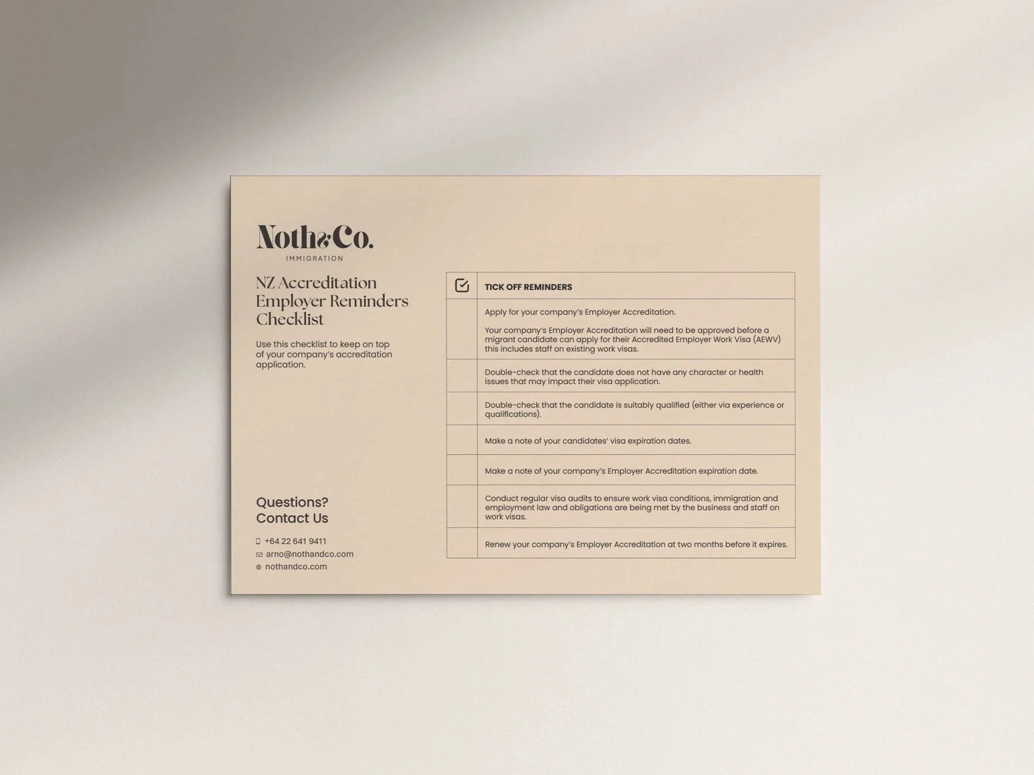 Make sure that your Employer Accreditation is current, and that you have a valid job check in place. This will need to be approved before the migrant candidate can apply for their Accredited Employer Work Visa (AEWV).